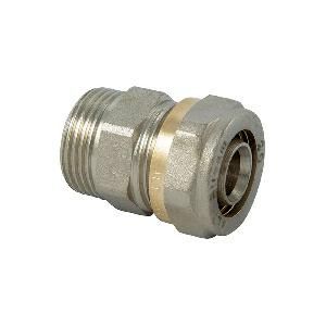 Муфта для труб из металлопластика, которые производит компания Altstream. Одно отверстие трубы имеет диаметр 20 мм, а второе – внутреннюю резьбу ½ дюйма.