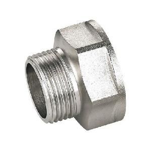 Назначение фитинга – переход с внутренней резьбы на наружную (больший/меньший диаметр). Переходник изготовлен горячим штампованием из латуни с последующим никелированием. Корпус фитинга – шестигранный – под гаечный ключ. Резьба – трубная цилиндрическая, совместимая с наружной конической. Номинальное давление – 40/25 бар (для типоразмеров до/более 1”). Максимальное рабочее давление при температуре среды 250 °С – 2,7/1,7 бара. Переходник применим на стальных, медных, латунных, пластиковых, металлопластиковых трубопроводах.